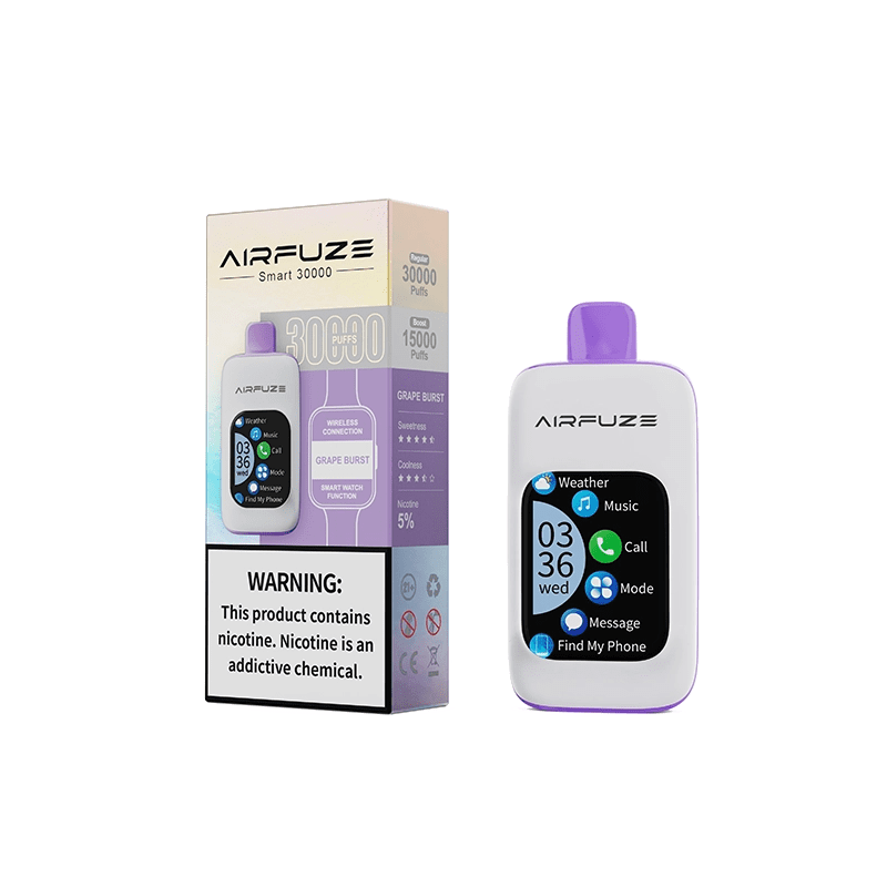 The Airfuze Smart 30000 Disposable Vape is not just a vape; its a high-tech gadget that brings convenience to your fingertips. With Bluetooth connectivity and integration with your smartphone or watch, it offers smart features like music playback, photo capture, and making phone calls right from the device.