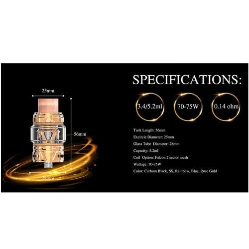The Horizon Falcon 2 Tank features a new coil, the Falcon 2 Sector Mesh Coil, that is tapered to form a compression path, making the flavor denser and the vapor smoother.?The coil has a 0.14ohm resistance.?This is a top-fill tank with a 510 connection.?