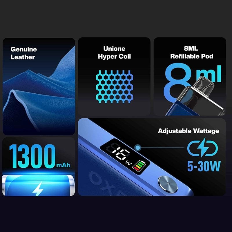 The OXBAR OXPOD Elite Pod Kit is the first refillable pod system from the OXBAR brand, known for its disposable vapes. This sleek and stylish device features a luxurious leather design and comes with a powerful 1300mAh battery, adjustable wattage up to 30W, and a large 8ml juice capacity.